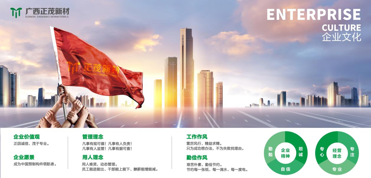 正茂集團是一家專業(yè)從事高端混凝土研制的高新技術(shù)企業(yè),創(chuàng)建于2007年,自主研發(fā)混凝土制品30余種,擁有國家級專利20余項,經(jīng)營范圍以新型環(huán)保建筑復(fù)合材料及裝配式建筑預(yù)制構(gòu)件為主體。2019年7月,正茂集團正式簽約入駐馬山縣蘇博工業(yè)園區(qū),投資建設(shè)以高鐵、地鐵、市政、電力、水利及裝配式建筑構(gòu)件等為主的生產(chǎn)線項目。...